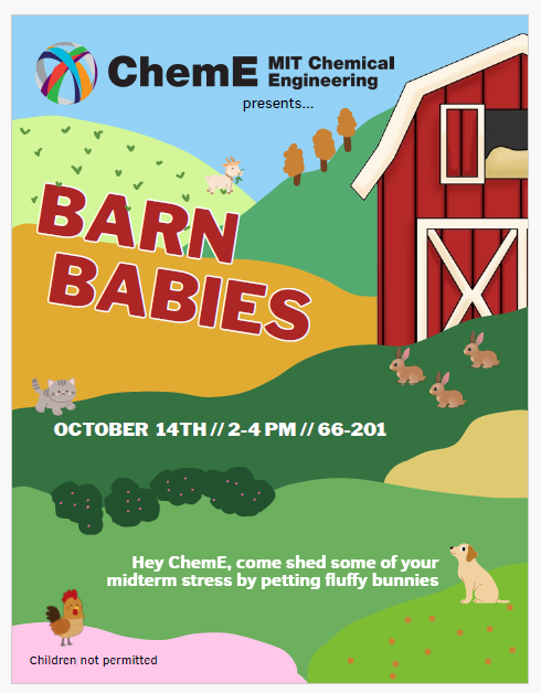 October 14: Midterm fun – Barn Babies, 2:00 p.m. in 66-201.